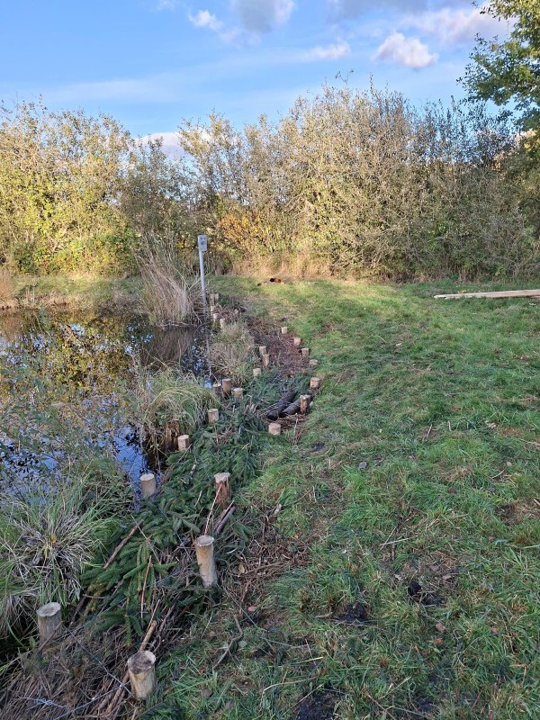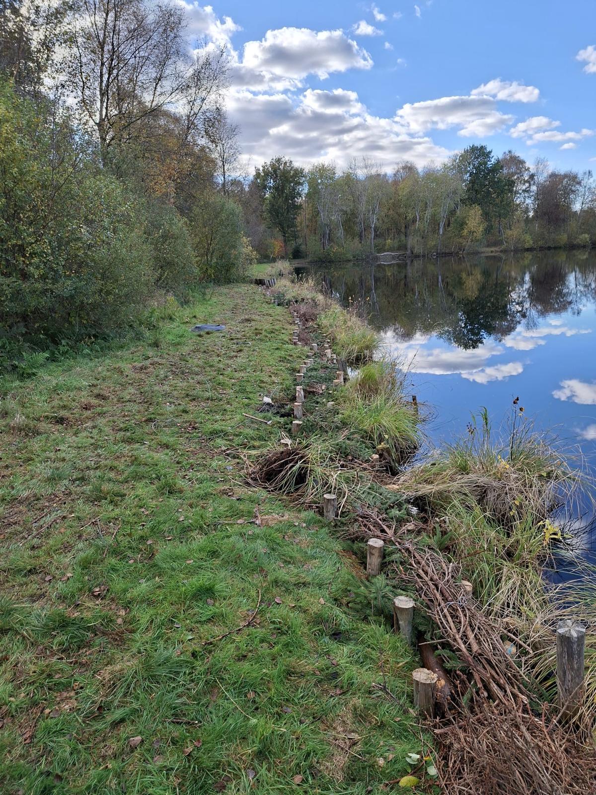 Am 17. und 18.10.25 haben wir das Südost-Ufer in Ostrohe mit Pfählen und Faschinen auf einer Strecke von 50 Metern befestigt.
